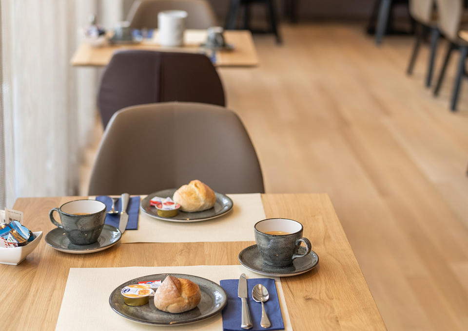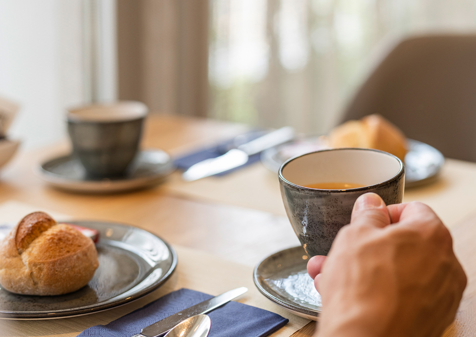 Stärken Sie sich vor einem langen Arbeits- oder Ausflugstag mit Kaffee oder Tee und den Köstlichkeiten vom reichhaltigen und regionalen Frühstücksbuffet.