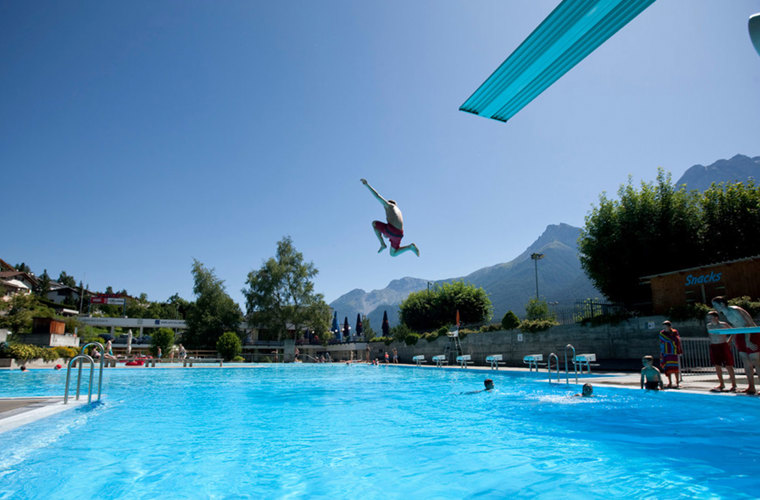 In addition to the Engadin Bad Scuol, the Trü open-air swimming pool is also open in summer with a pool for swimmers, non-swimmers and toddlers. In addition, the Trü sports facility offers a beach volleyball court, mini-golf, table tennis and a football pitch. The outdoor pool can be reached in a few minutes from the hotel. For swimmers, the indoor swimming pool Quadras with a 25-metre pool is also recommended. Admission to the Trü outdoor pool and the Quadras swimming pool is free for our guests.