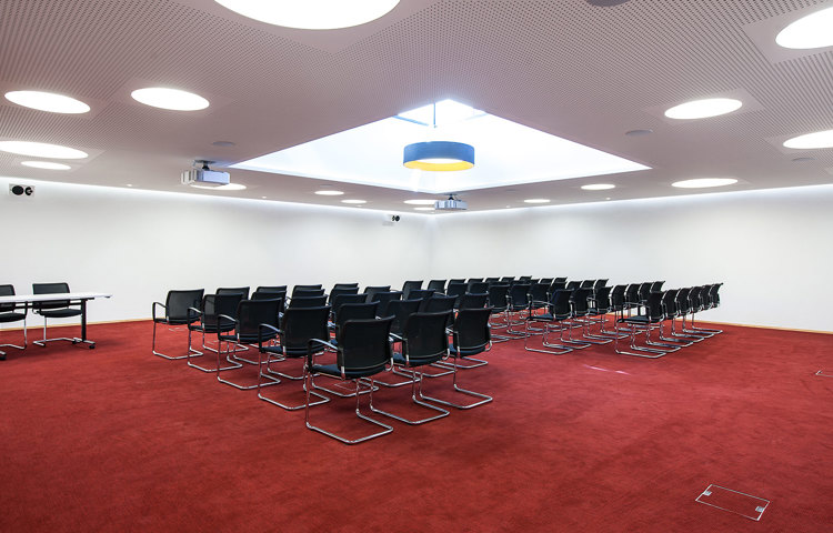The spacious conference room with foyer and two entrances is equipped with two parallel beamers for double or different display as well as magnetic walls.