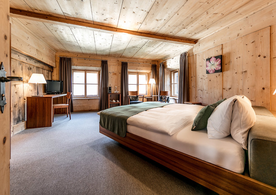 The 4-star hotel is one of the most romantic hotels in the Lower Engadine in a 400-year-old Engadine house with an Engadine gourmet restaurant. The GuardaVal offers direct access to the Engadin Bad Scuol. 36 individually designed rooms invite you to a romantic stay.